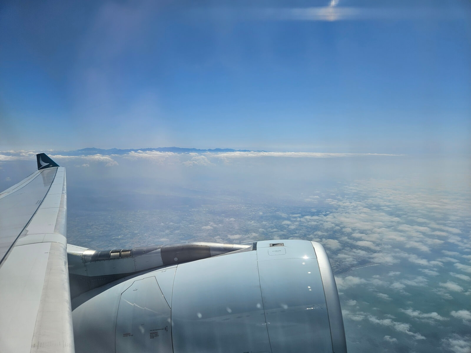 離開登機門、經過大約 20 分鐘的滑行後,我們朝西南方向起飛。隨著飛機逐漸爬升,窗外可見屹立於雲海之間的雪山山脈。