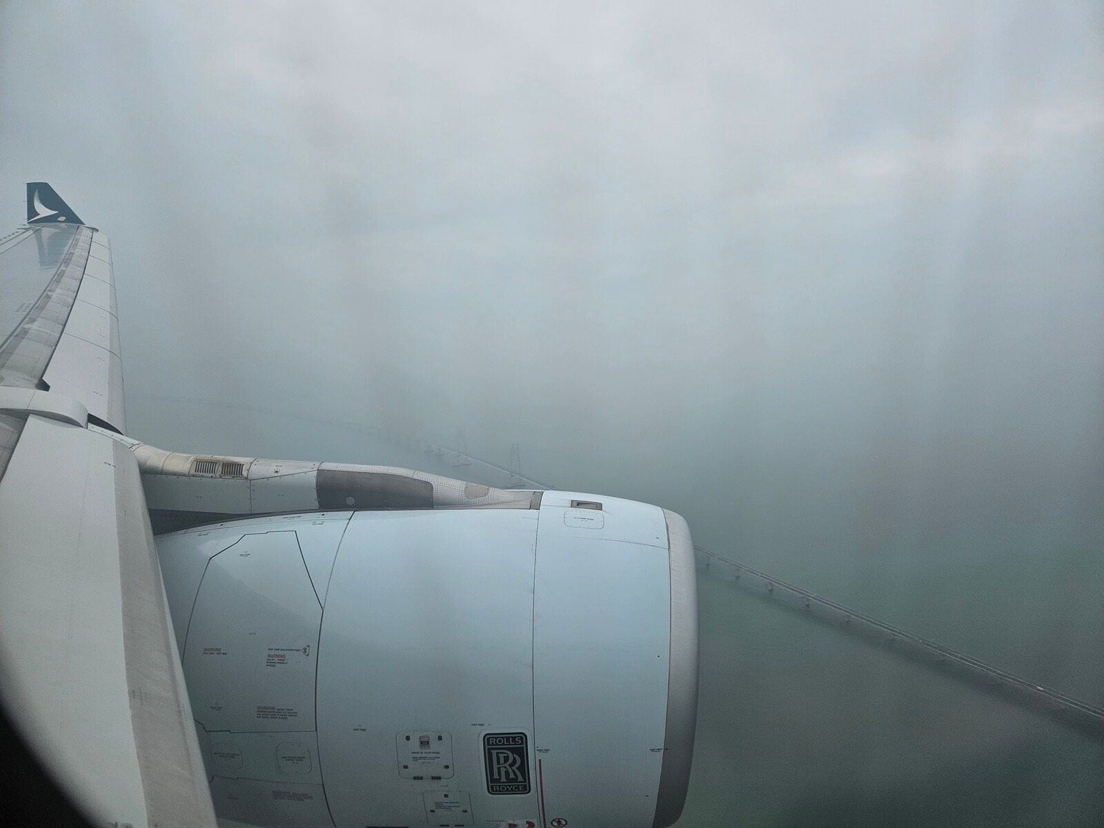 當天抵達之前香港正在下雨,空中的雲、霧非常厚重,平常連綿的港珠澳大橋,也快要隱身在霧氣之中。