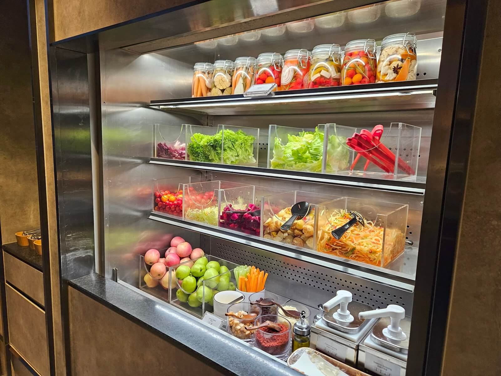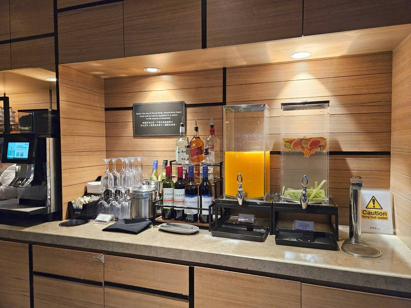 整體而言這間環亞的餐飲選擇,相較 TPE 一航的兩間環亞貴賓室來得少(像是沒有提供包裝飲料),但優點就是可以看到窗外停機坪上來來往往的飛機與作業車輛。