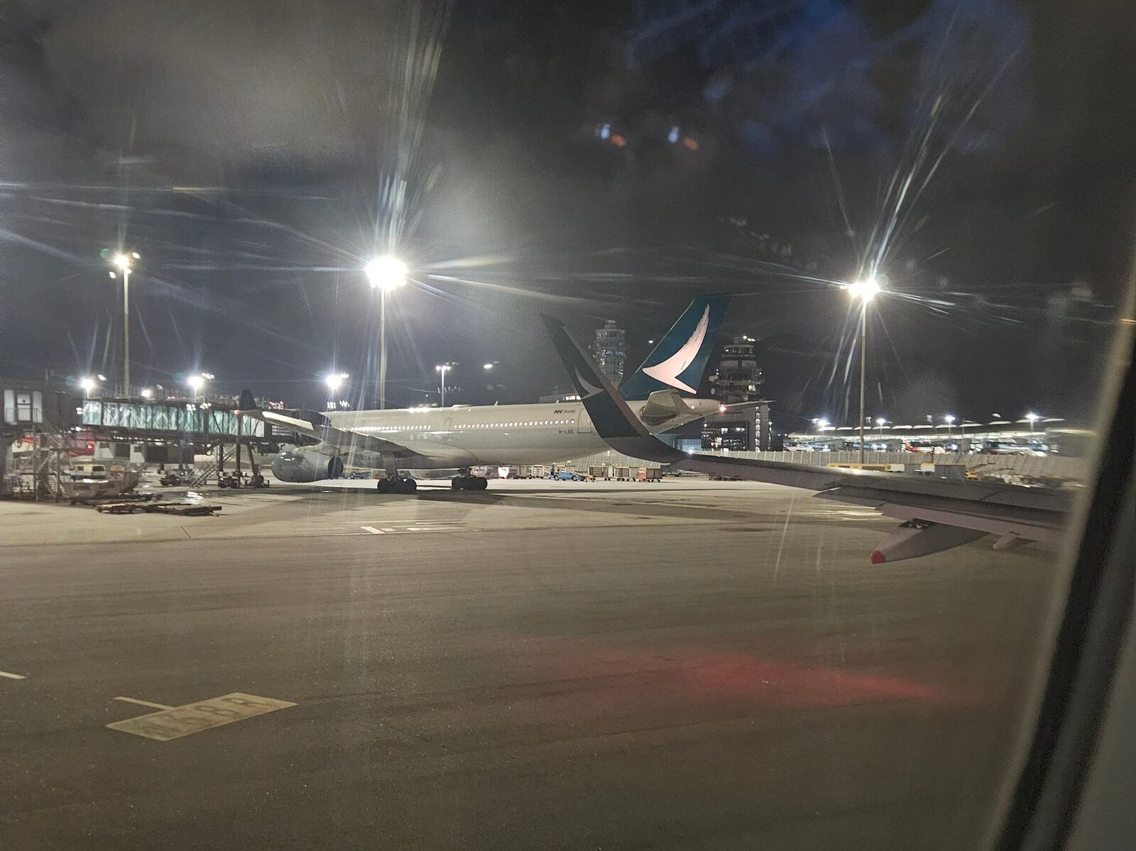 降落後,座艙長在進行中文、廣東話廣播的時候,有再次對延誤表示歉意。(外國乘客表示)而很快地,我們已經滑行到 B1 登機門,當天在空橋上開門的,剛好是上次去曼谷時,非常關心我的地勤大叔。