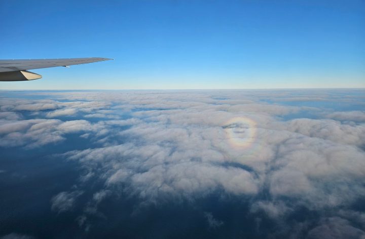 這天 CX725 的進場路線,會先從吉隆坡的東北方飛過,再往前飛行一段後,向右迴轉降落至 KLIA(吉隆坡國際機場)。可惜當時吉隆坡上方的雲層厚厚一層,沒能自機上遠眺吉隆坡的城市風光。