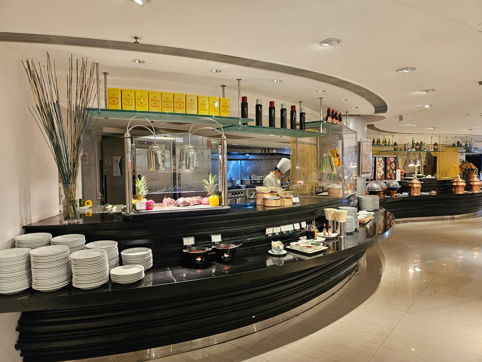 香港富豪機場酒店自助餐廳「藝廊咖啡室」的牛排、現點現做料理餐檯。