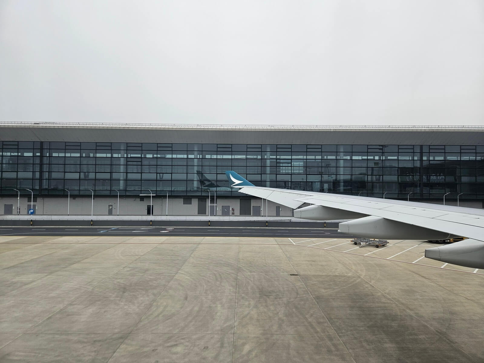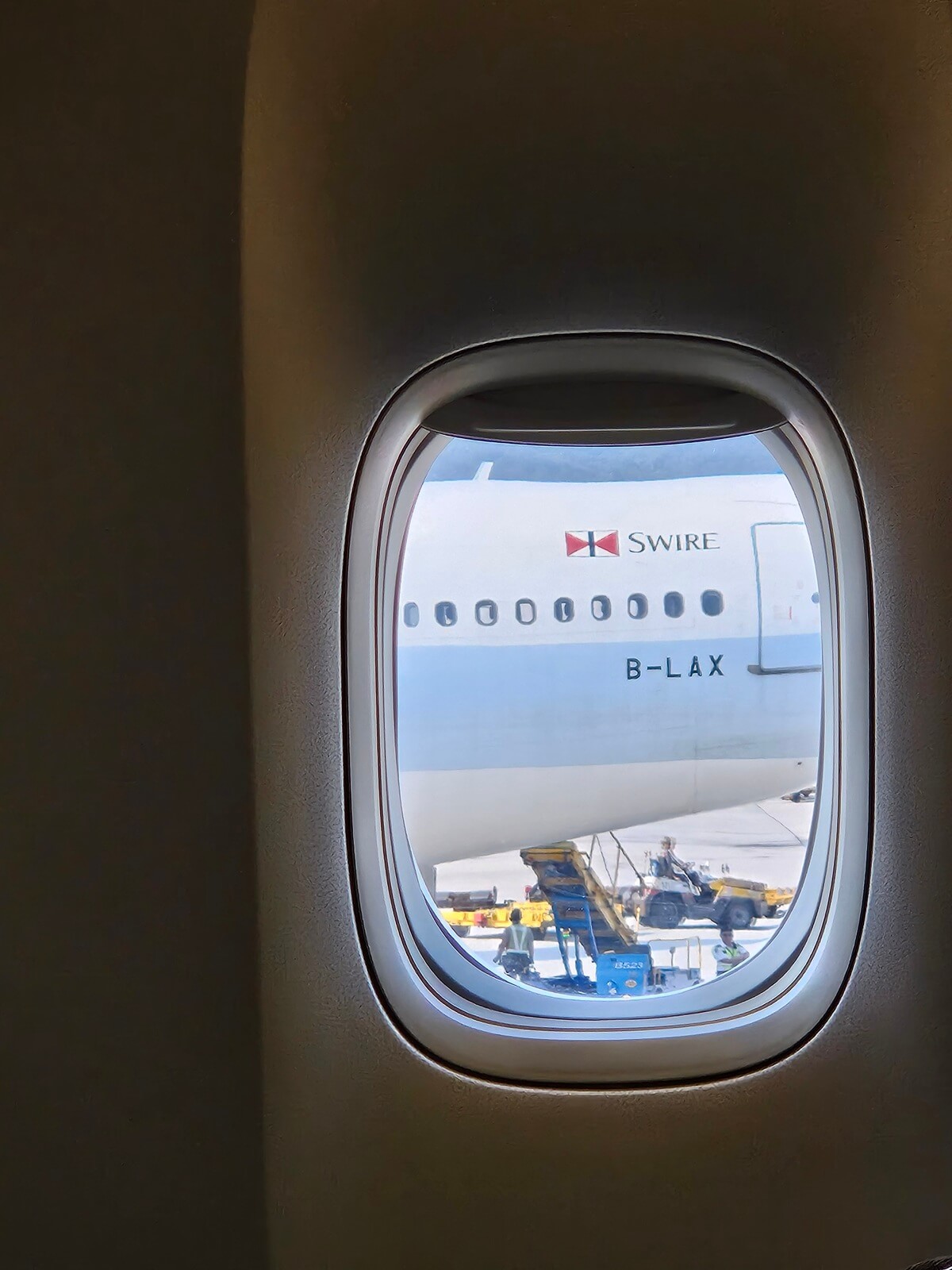 當天 CX961 使用距離最近的 474 號登機門,還沒到登機門,已經可以看到等等要帶我們前往香港的 B-LBD。