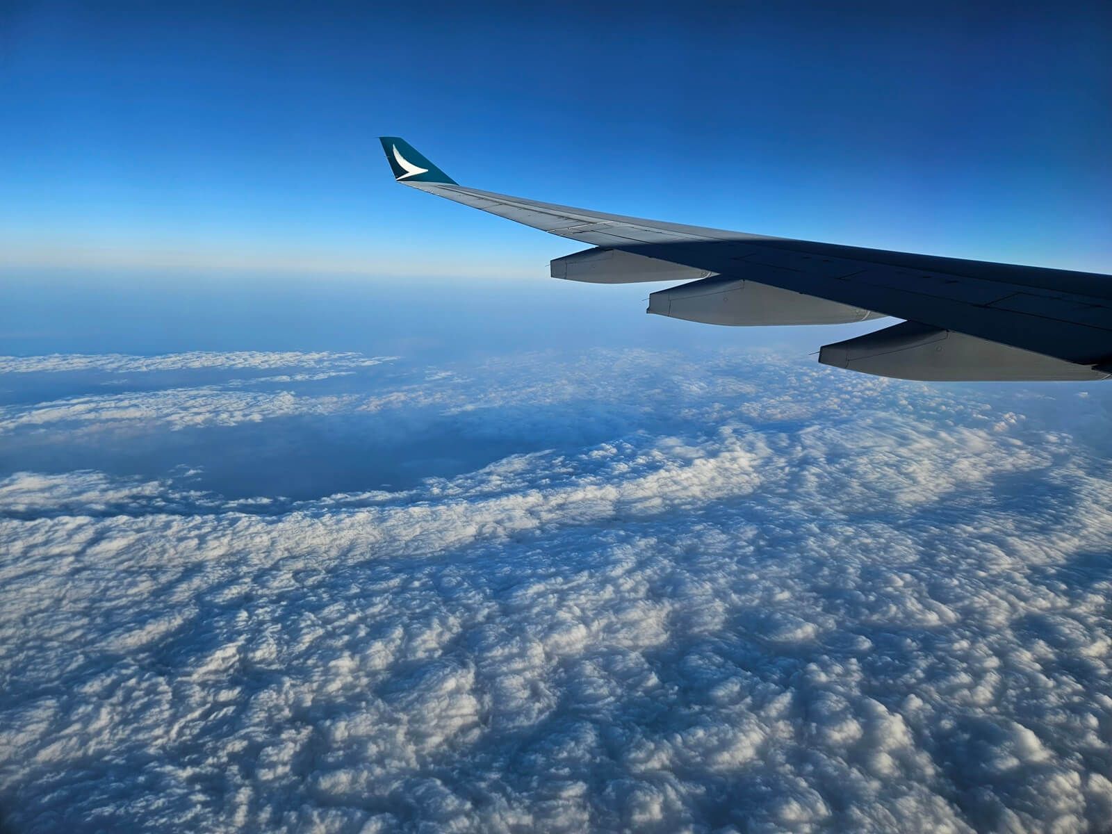 隨著飛機持續爬升與南飛,總算見到藍藍的天空。