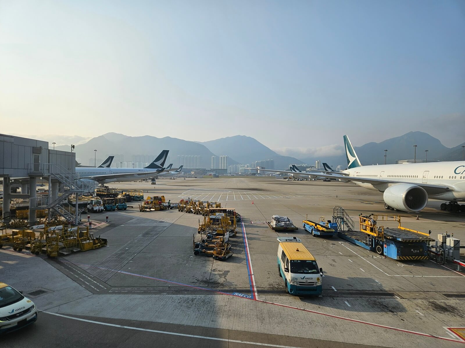 這天飛機停在六號登機門,抵達時前一個航班尚未離開、等了一下。飛了香港好幾次,這是我第一次被安排在緊鄰入境檢查大堂的 1~10 號登機門。